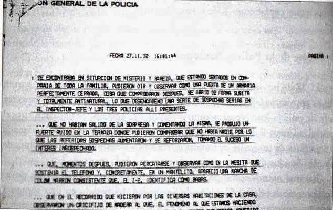 El 27 de Noviembre de 1992 la familia llamó a la Policía.En el informe se podía observar que explican como veían figuras serpenteando por el suelo, las puertas de los armarios se abrían de forma sobrenatural y en una de las habitaciones donde estaban el policía y el padre, vieron un crucifijo arrancado y dado la vuelta. El informe termina diciendo que no se puede estudiar por falta de coherencia.